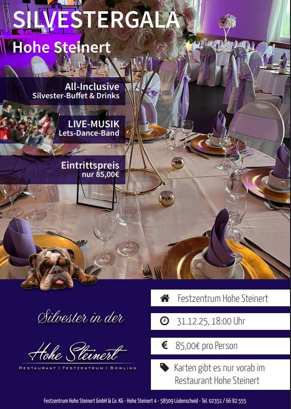 Das Team des Restaurants Hohe Steinert in Lüdenscheid freut sich darauf, Ihnen und Ihren Gästen in unseren Räumen ein paar schöne Stunden und gelungene Veranstaltungen zu bereiten.